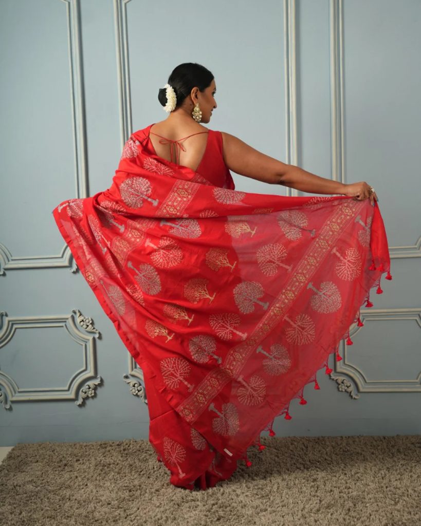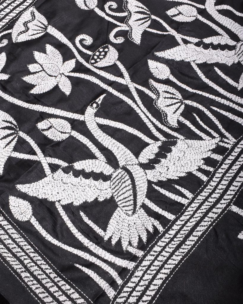Древо Жизни — ещё один мощный символ, объединяющий прошлое и будущее. Его корни уходят в землю, ствол принадлежит миру людей, а ветви тянутся к небу и богам. В вышивке Кантха этот мотив словно соединяет три уровня существования: земной, человеческий и божественный. Это узор о росте, изобилии, продолжении рода и устойчивости.