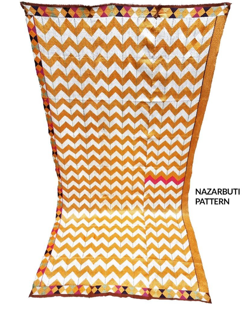 А узор назарбути — маленький участок, оставленный невышитым, — служит оберегом. Его специально выделяли контрастом, чтобы «сбить» негативный взгляд и защитить человека.