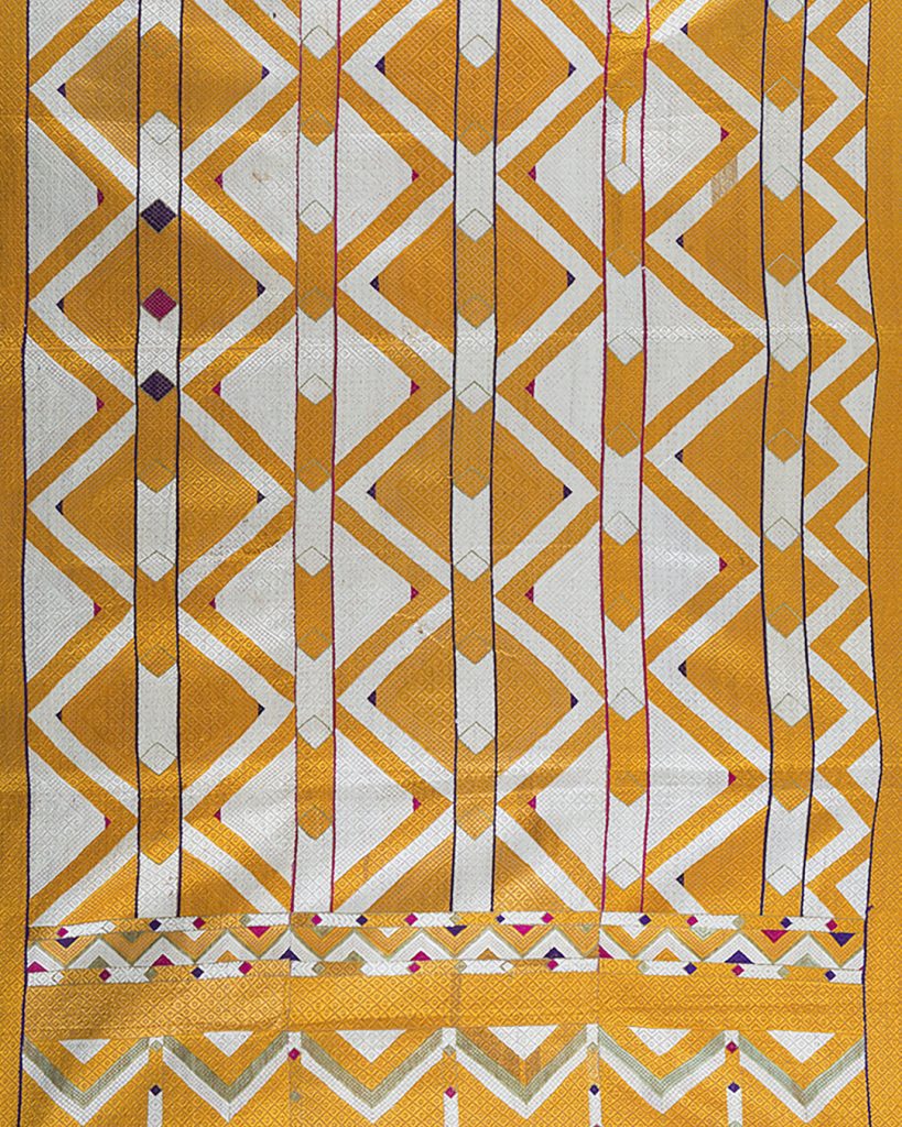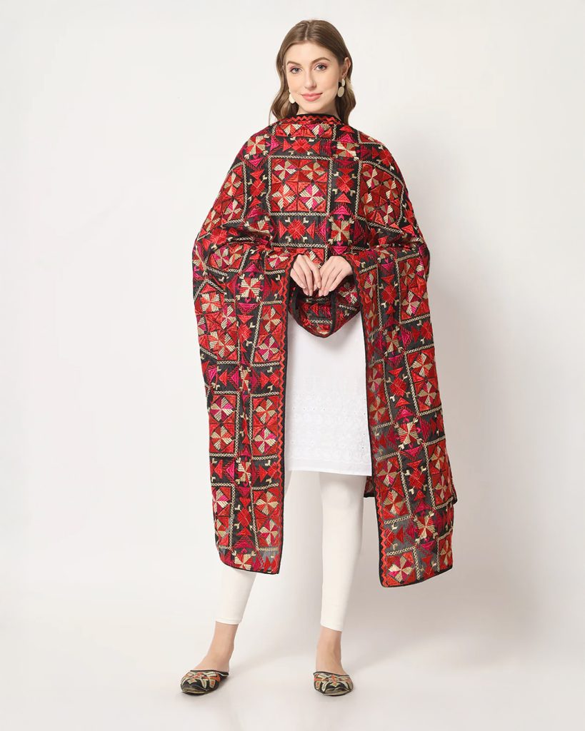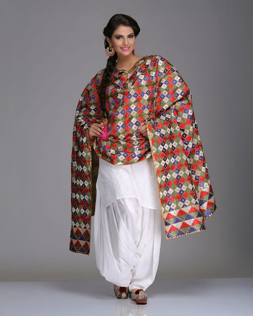 В багх-вышивке Пенджаба часто встречаются строгие геометрические фигуры: квадраты, прямоугольники, ритмичные комбинации линий. Эти элементы символизируют устойчивость, порядок, равенство. Они словно закрепляют ощущение, что жизнь держится на прочном фундаменте.